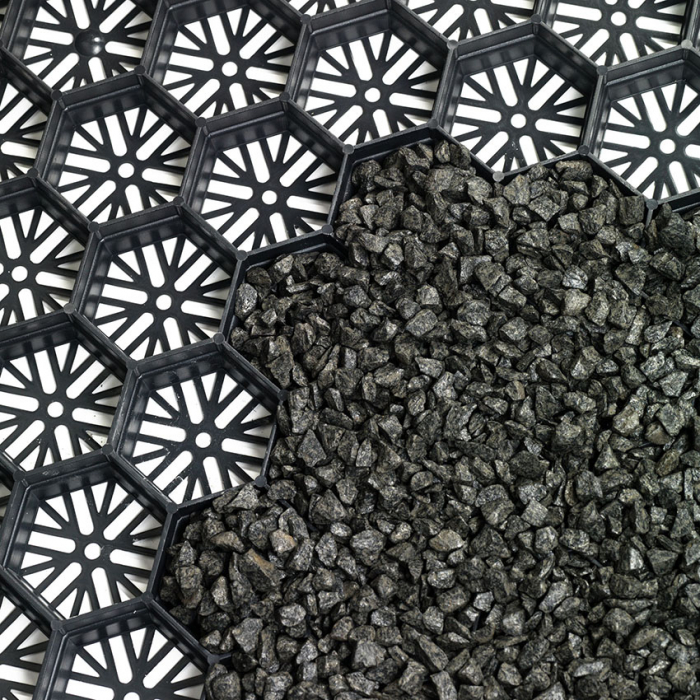 Deze zwarte Mevoraster grindplaten zijn gemaakt van polypropyleen en zeer eenvoudig aan te leggen vanwege een doordacht koppelsysteem. Doordat ze ook los te koppelen zijn kunnen ze ook opnieuw aangelegd worden.