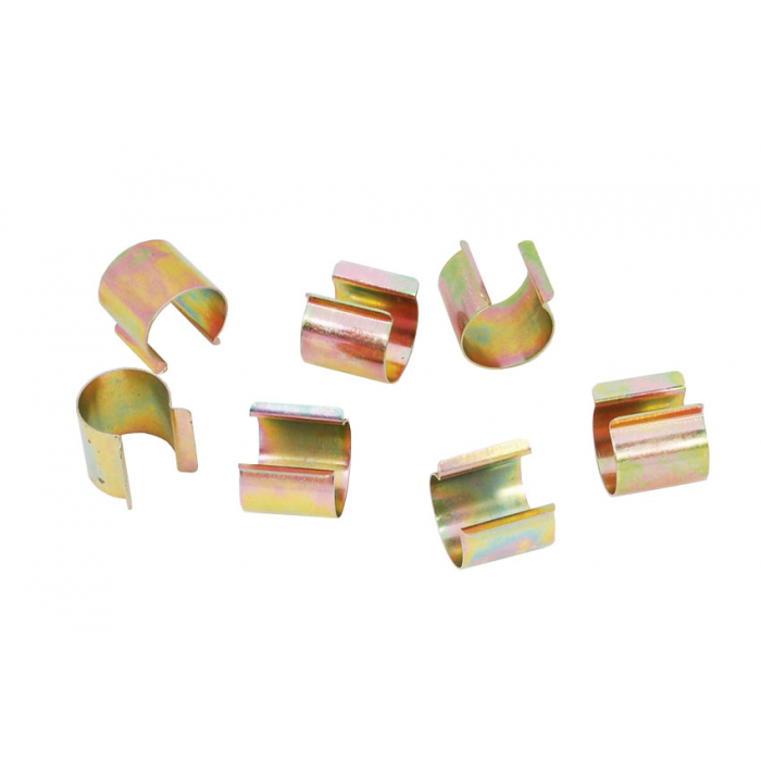 Sterke stalen buisklemmen om folie en schermgaas vast te klemmen.