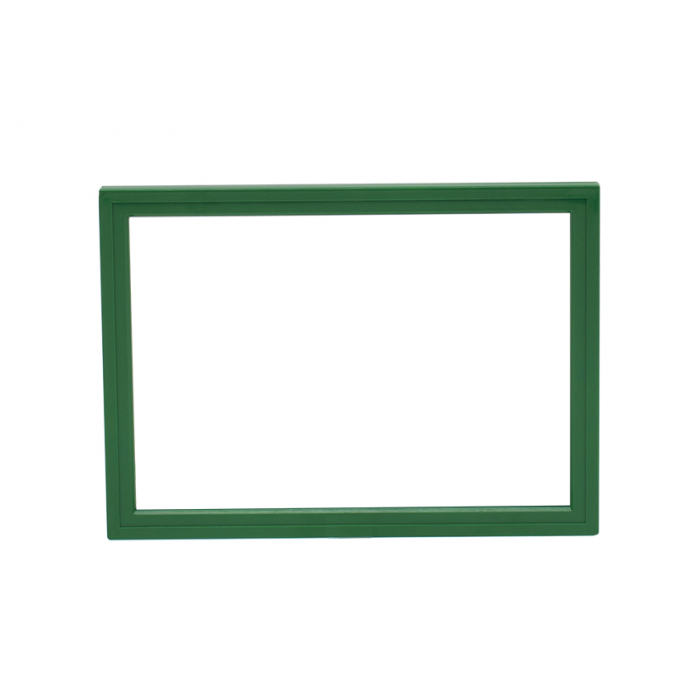 Dit groene A5 formaat plakkaatraam (216 x 154 mm) is geschikt voor met 100µ gelamineerde plakkaten tot 4,5 mm dik. Dit raam is gemaakt van hoogwaardig kunststof en heeft een hoge UV bestendigheid.