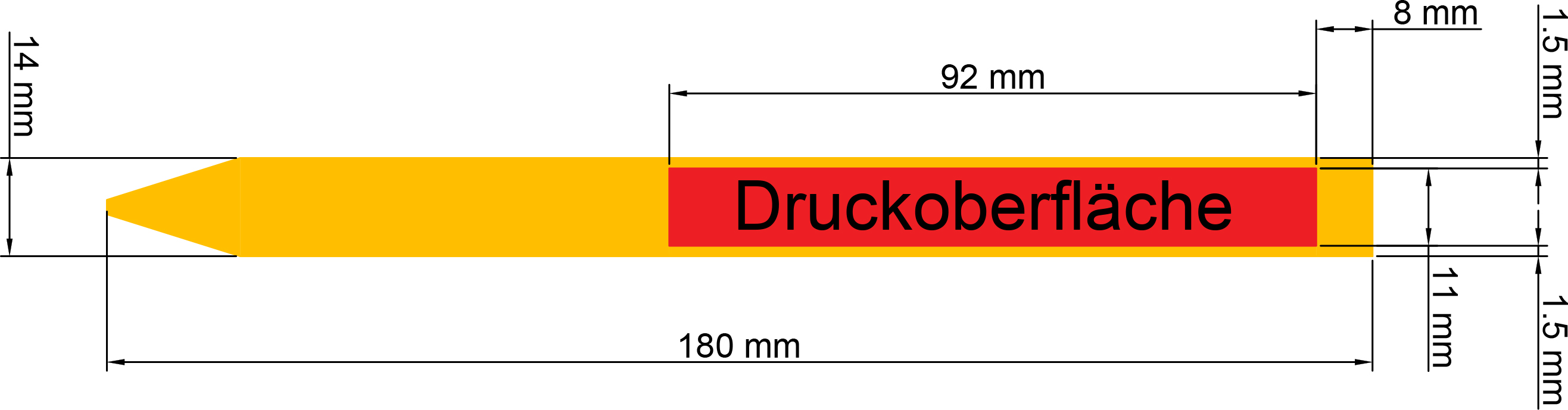 Da können nur die oberen 10 cm bedruckt werden, wobei man zusätzlich 0,8 cm von oben und 1,5 mm von beiden Seiten einhalten muss. Damit steht Ihnen eine effektive Druckfläche von 9,2 x 1,1 cm zur Verfügung.