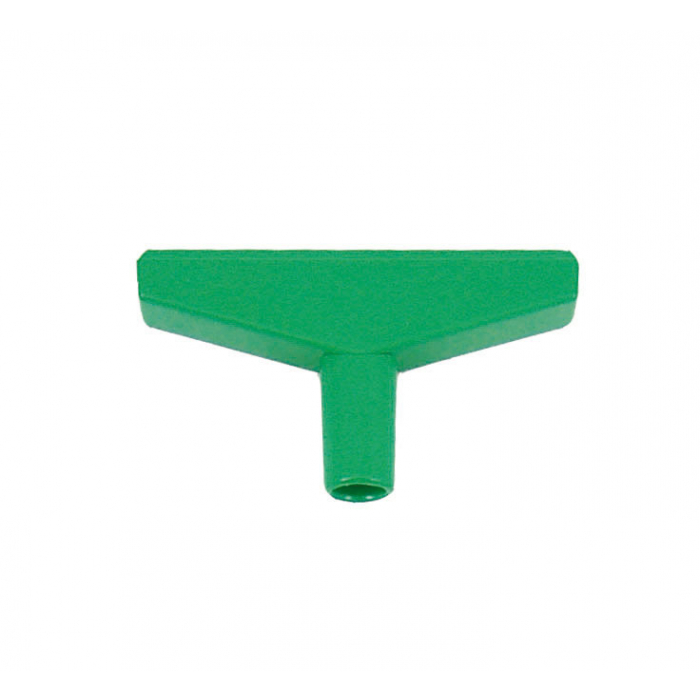Met dit 90 mm brede, groene kunststof T-stuk verbind je het plakkaatraam aan de standbuis.